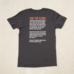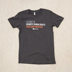 Wherever you go, can you show everyone that that you take and embody the pledge to "promote human rights and challenge injustice" with the National Center for Civil and Human Rights pledge tee in charcoal grey. Available in sizes small - 3x.